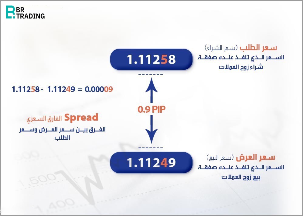 The spread is the difference between the bid price (sell price) and the ask price (buy price). The ask price is always slightly higher than the bid price, and this difference is called the spread. The spread is influenced by the available bids and asks in the market. It represents the profit margin for the party executing the trade, whether it's a forex broker, bank, or currency exchange office.
