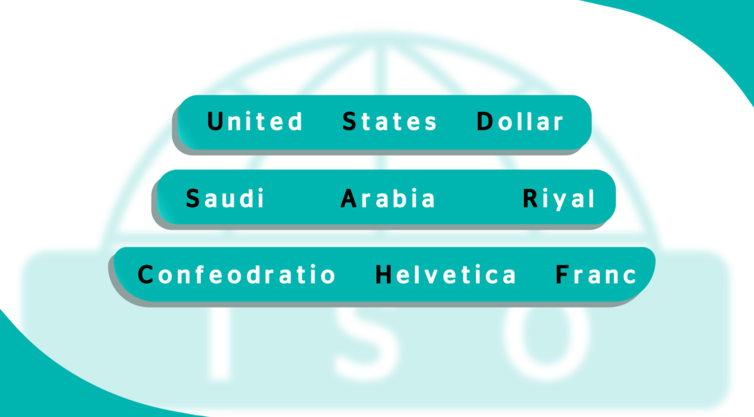 The International Organization for Standardization (ISO) has created a naming convention for currencies. Each currency is given a three-letter code: