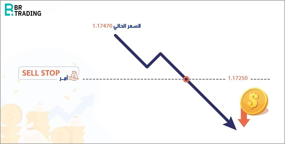 SELL STOP: A pending order to sell at a price lower than the current market price. This order is placed when you expect a breakdown below a strong support level.